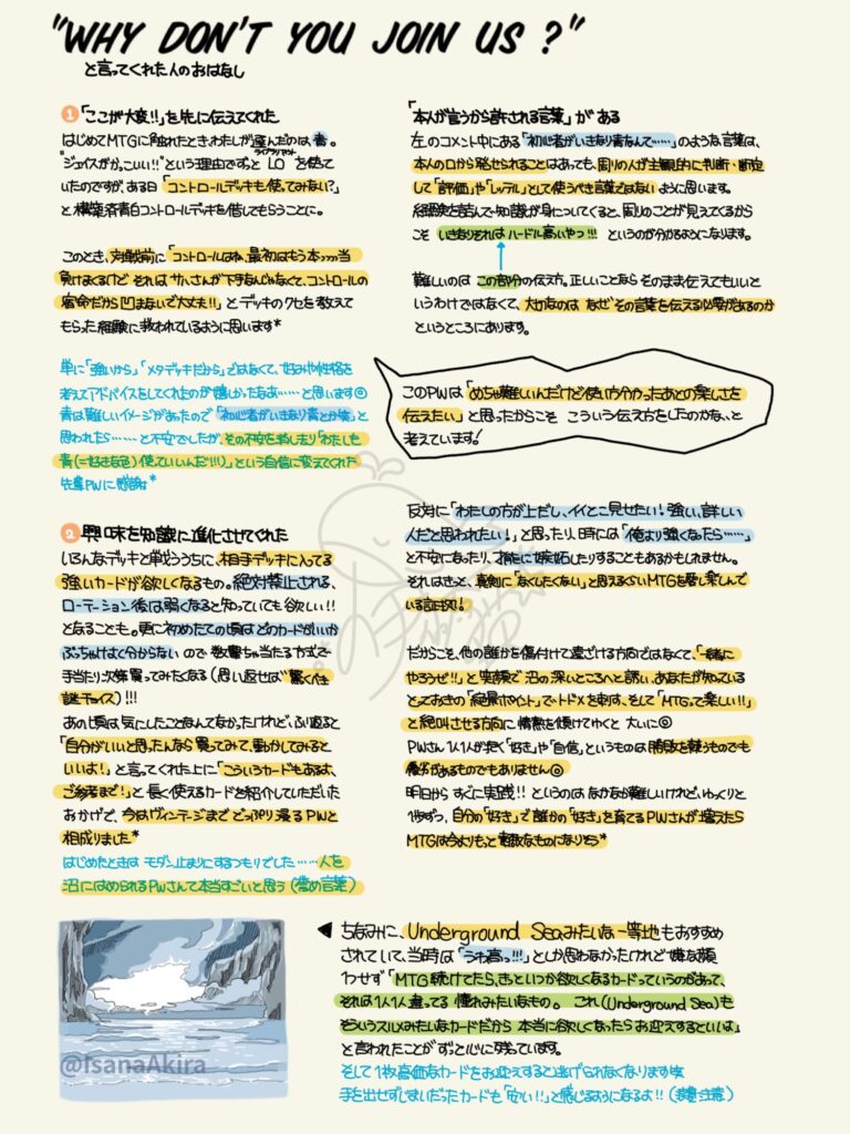 いまはもうMTGの記事を書く予定はないけれど、このときにいただいた言葉はいまでも伊佐奈の支えです◎