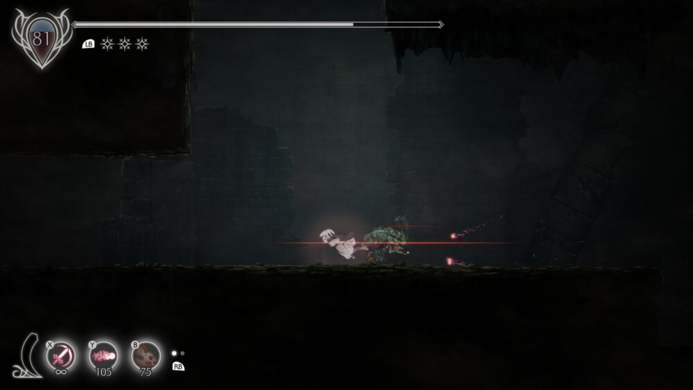 2Dアクションとはいえ半分3Dみたいなところがあるので、知らない敵やボスに出会ったらまずは敵の動きを把握するところから始めるのがおすすめです。