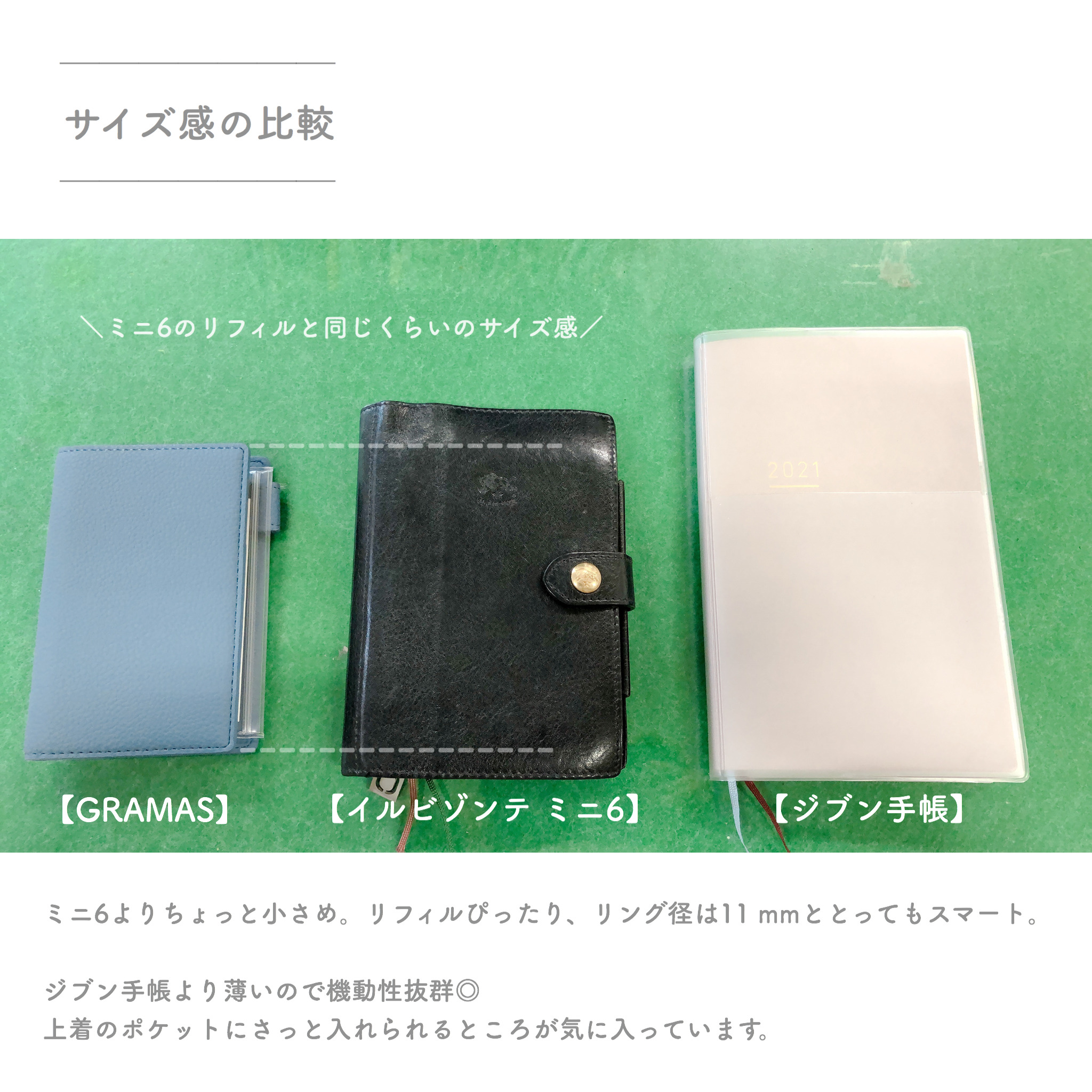 今回購入したのは、GRAMASという手帳。わたしはマイクロ5をチョイスしましたが、売り場にはミニ6サイズの展開もありました。