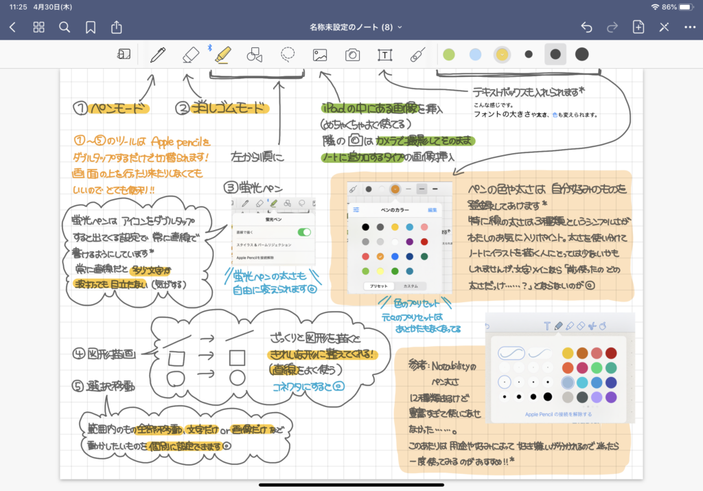 文字の移動が簡単だったり、画像を挿入できたりと言ったデジタルならではの機能も活用することで、アナログとは一味違ったノートが仕上がります。