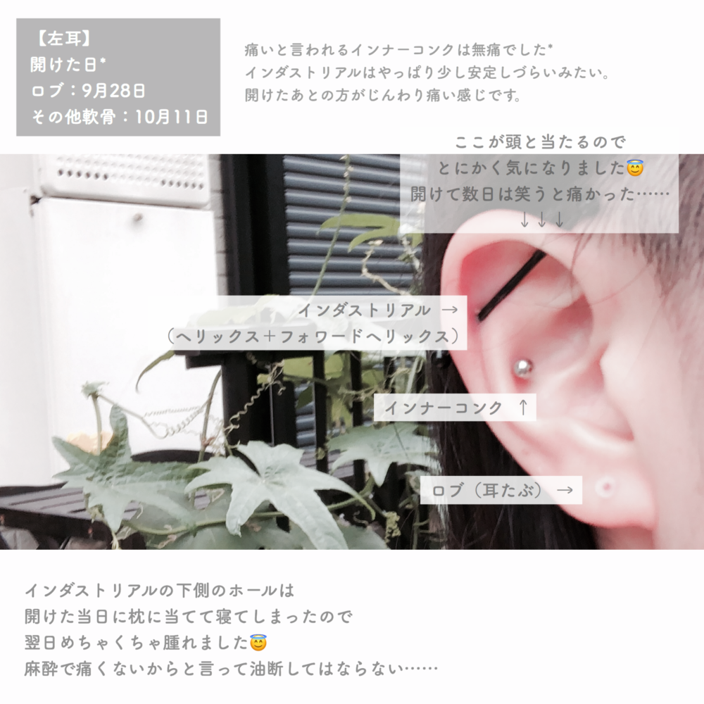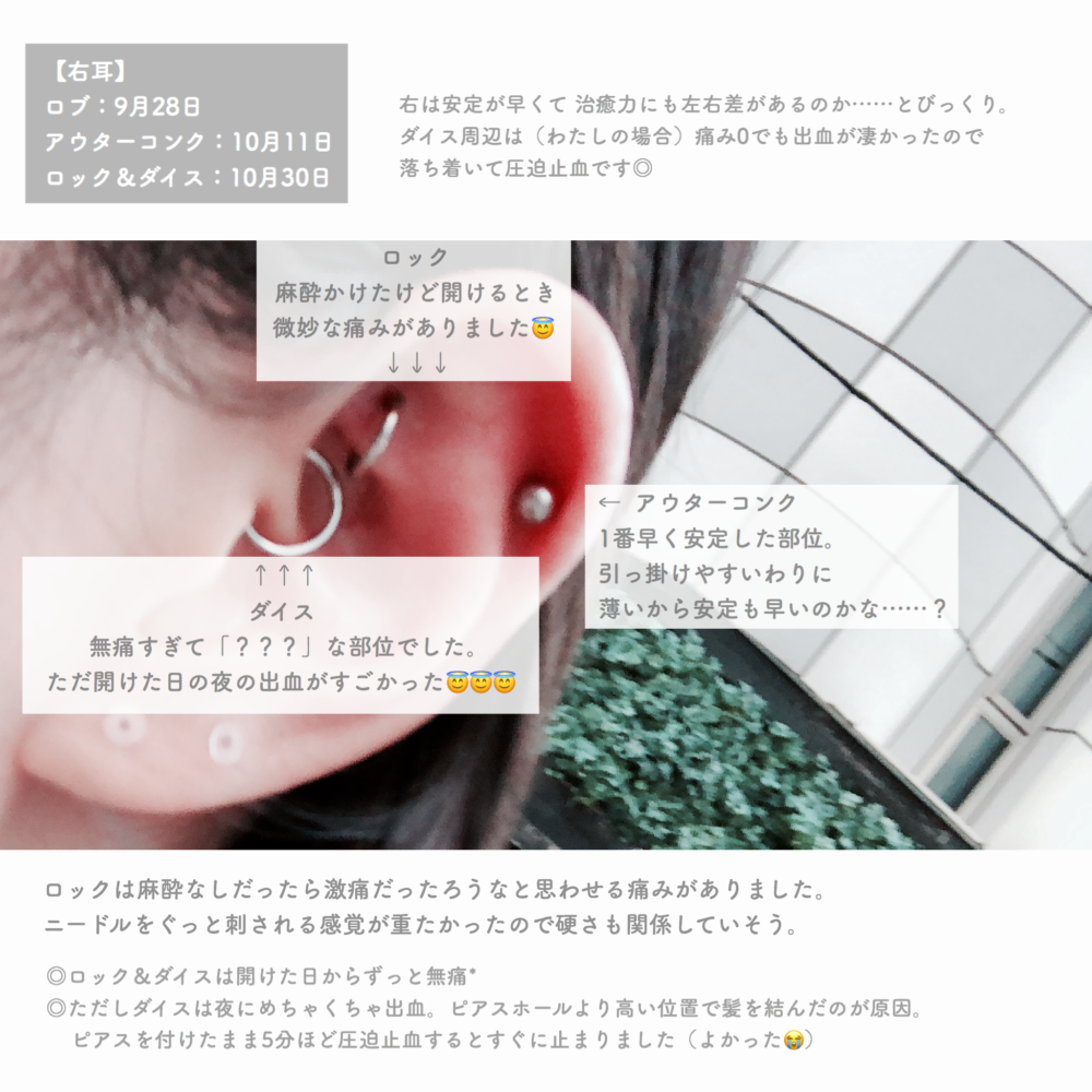 耳たぶについてはピアッサーで開けたときの経過についても記事にできそうなので、もうしばらくお待ち下さい◎