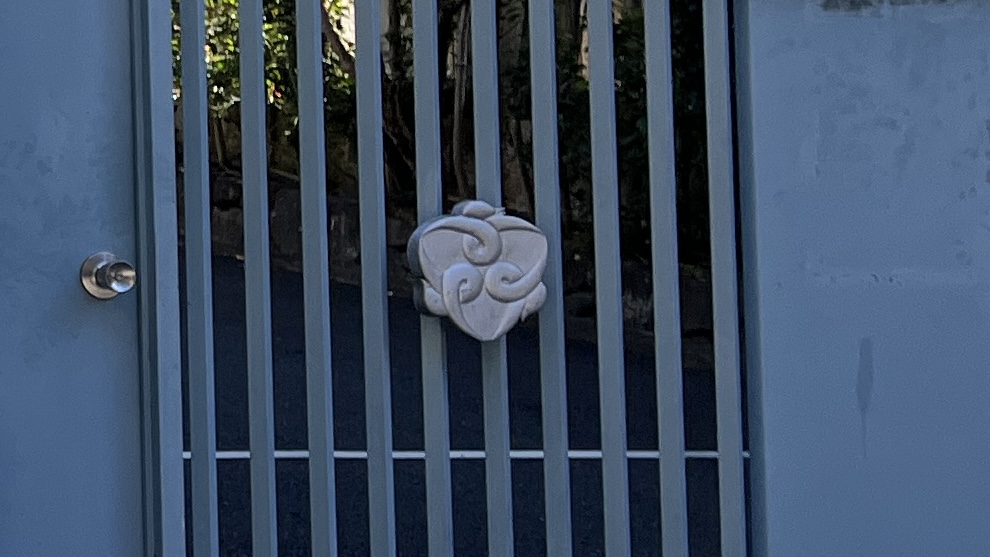 鳩山会館の入り口には3羽の鳥が組み合わされた家紋が掲げられています。鳩山会館のあちこちに見られる家紋ですが、実はハトではありません。
