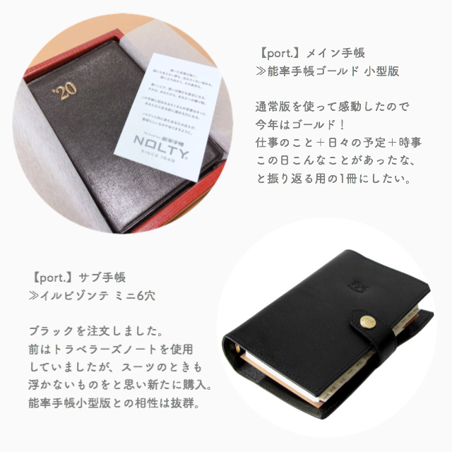 来年度の持ち運び手帳には、今年もお世話になった能率手帳に加え、イルビゾンテミニ6穴を追加。