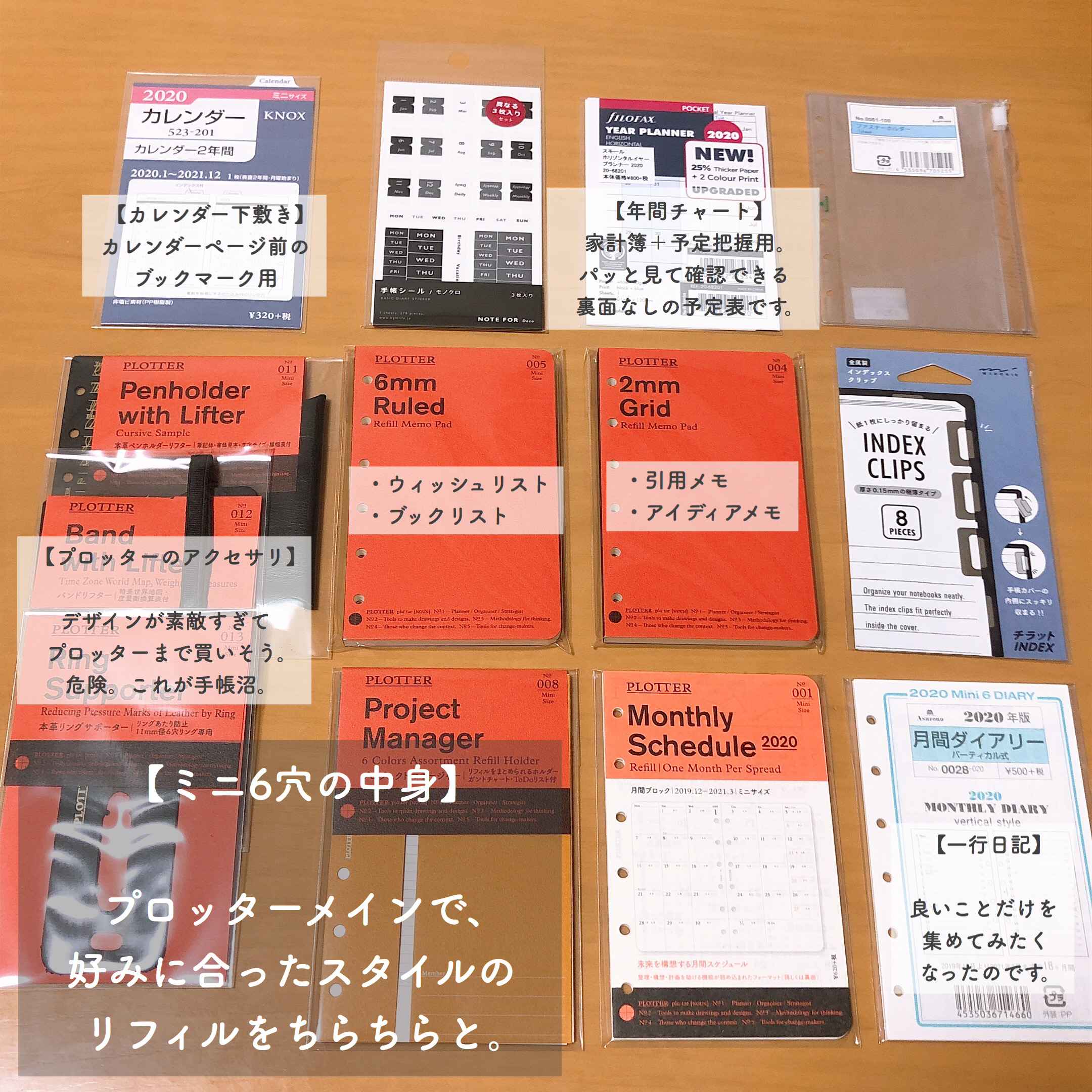 リフィルはほぼプロッター。365デイズノートと同じく、リスト類は自分で書いて作ってゆくスタイルです。